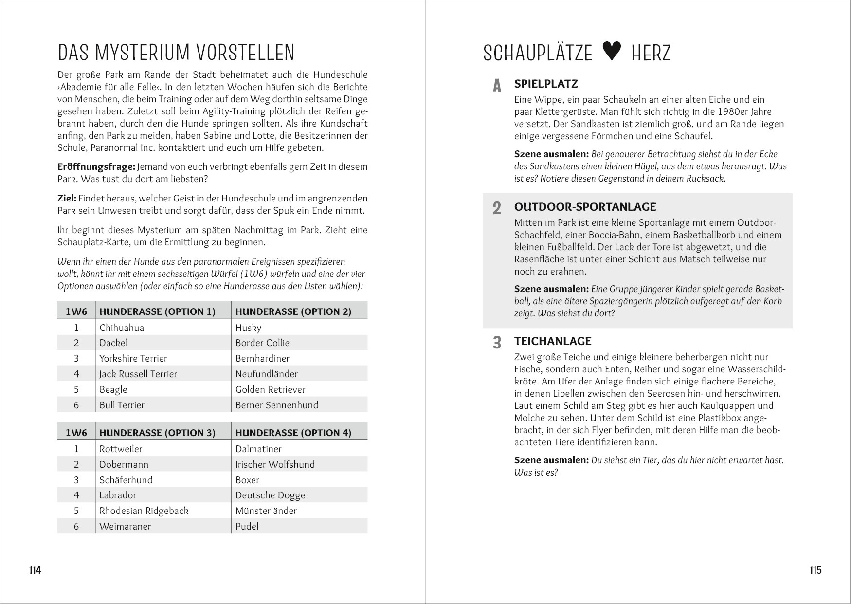 - jeweils mit 10 Schauplätzen, 30 paranormalen Ereignissen, 10 Nebenfiguren und 30 Hinweisen